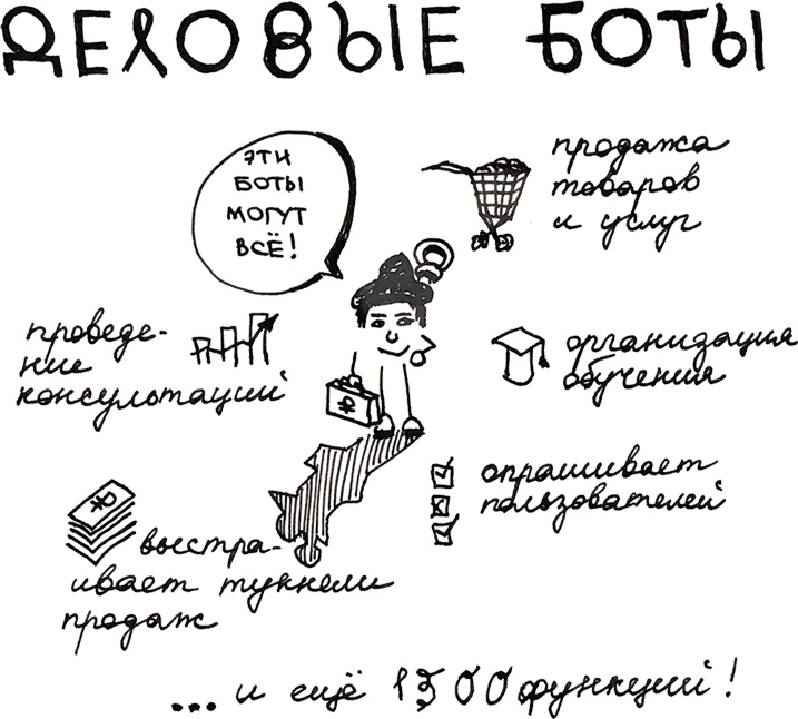 Например, интернет-магазины являются одной из категории бизнес-ботов.
