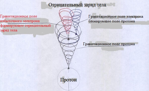 Рис.39 Отрицательный «заряд» тела-гравитационное поле избыточного электрона