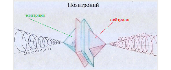 Следующим этапом в создании вещества, было создание позитрония, необходимого для формирования кристаллической решётки протона и нейтрона. Необходимо было соединить электрон и позитрон в единое целое. Для этого необходима высокая температура и давление. Температура необходима для того, чтобы ослабить Эфирные вихри электрона и позитрона, а давление нужно для интеграции нейтрино электрона и позитрона друг в друга.