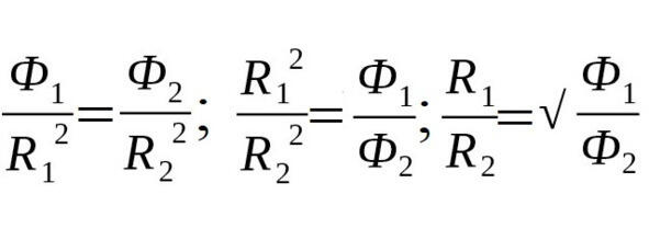 Но это справедливо лишь только в том случае, если мы соберем световой поток со всей площади. Однако S1 <S2 <S3, значит ΔФ1> ΔФ2> ΔФ3 приходящийся на единицу площади.