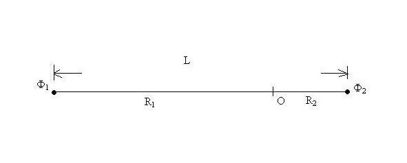 Равенство освещенности от Ф1 и Ф2 будет в некоторой точке О.