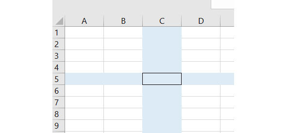 Буквенная «нумерация» столбца и цифровая нумерация строки задают однозначное положение ячейки на листе ее координаты. Например, выделенная ячейка на имеет координаты C5. Сначала идет буква столбец, а затем без пробела цифра номер строки. Все буквы латинские.