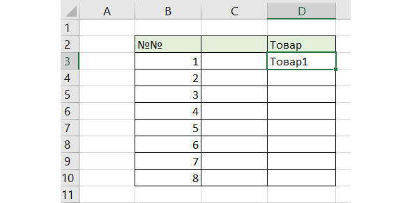 Наша задача заполнить второй столбец. Можно выделить ячейку C3 и протянуть ее вниз как описано выше. Однако, как правило на практике приходится работать с большими таблицами, состоящими из тысячи строк. В этом случае копирование перетягиванием может занять много времени. Поэтому в Excel предусмотрена возможность существенно сократить время копирования.