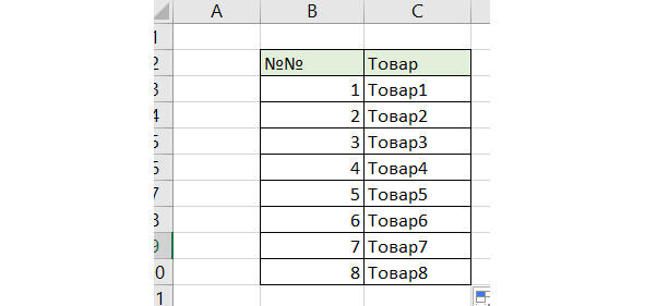 Рис. 14. Пример исходной таблицы для решения задачи