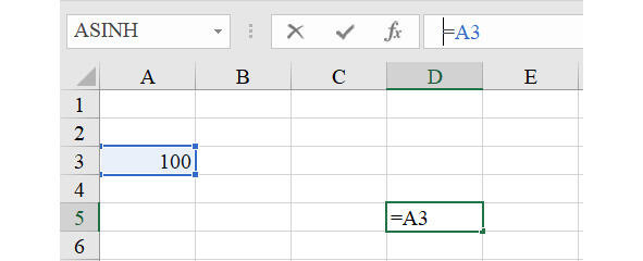 Введенная операция и есть элементарная операция операция ссылки или ссылка. Мы в ячейке D5 как бы сослались на ячейку A3 и получили те данные, которые хранятся в ячейке А3.