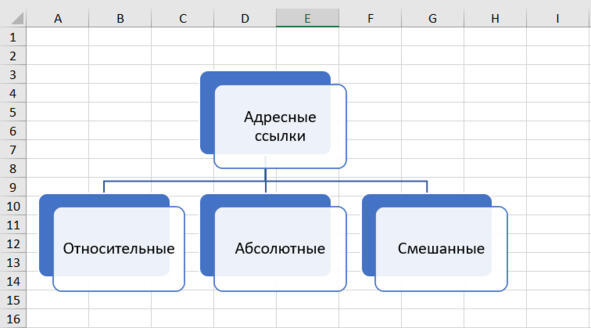 Таким свойством ссылки является способность изменяться. В зависимости от способности к изменениям ссылки можно разделить на относительные, абсолютные и смешанные. Классификация адресных ссылок показана на Рис. 35.