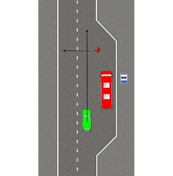 Пешеход может неожиданно выйти перед автобусом.