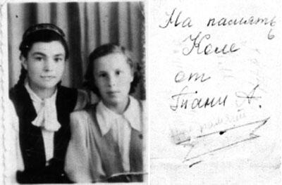 Фото Т. Агафоновой с подругой, подаренное Николаю Рубцову, 1953 г.
