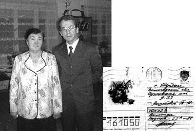 Т. Решетова и В. Белков; с. Шуйское, районная библиотека, 2003 г., конверт, в котором В. Белков прислал письмо Т. Решетовой