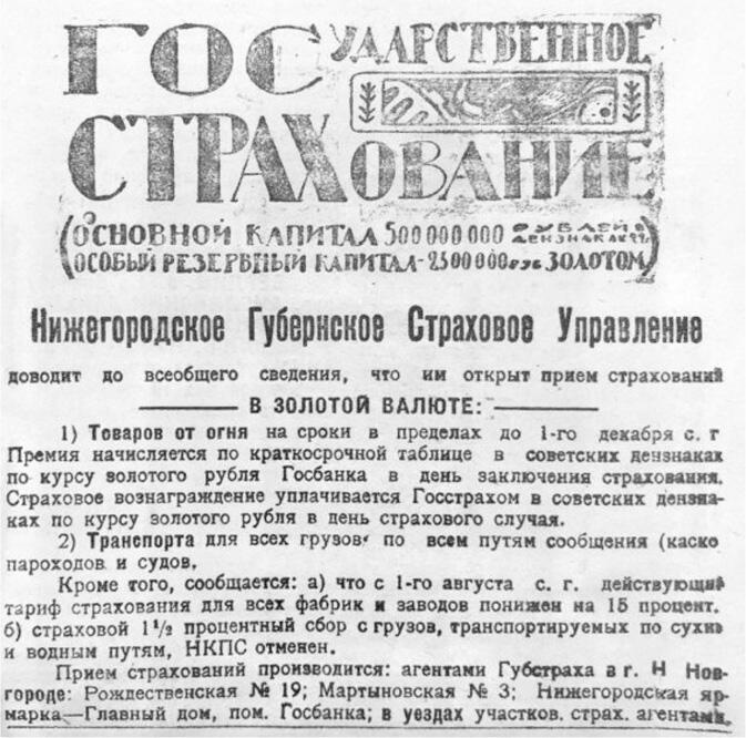 К ноябрю через кассу Нижгубстраха прошла солидная сумма общих поступлений в 20 млн руб. (дензнаках 1922 г.). Благодаря этому Губстрах полностью оплатил убытки по 82 пожарам в сумме 963 735 руб., а также перевел в центральный Госстрах 15 млн руб. Подчеркивалось, что «Общие поступления страховых сборов () превысили всякие ожидания». [Док. 10].