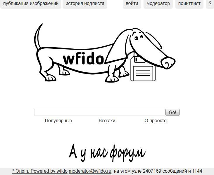 WFido, написанный Максом Лушниковым, который позволяет не только писать/читать эхи, но и прямо на сайте зарегистрироваться в Фидо и получить поинт-адрес. Впрочем, старожилы утверждают, что из-за кривости своей wfido работает с большими базами очень медленно и заставляет прогружать браузером немалые объёмы только при переходе от одного письма к другому. Ну и основным минусом сабжа, конечно, считается невозможность читать эхи незарегистрированным юзверям. Впрочем, это не мешало разойтись этому движку по нескольким и даже крупным узлам.22
