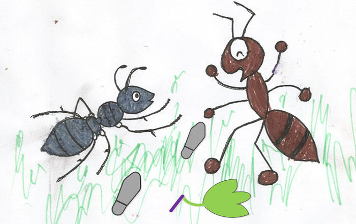 А Никита, став муравьём, сразу же оказался на земле под сломанным им цветком. Неожиданно он увидел подходящего к нему муравья.