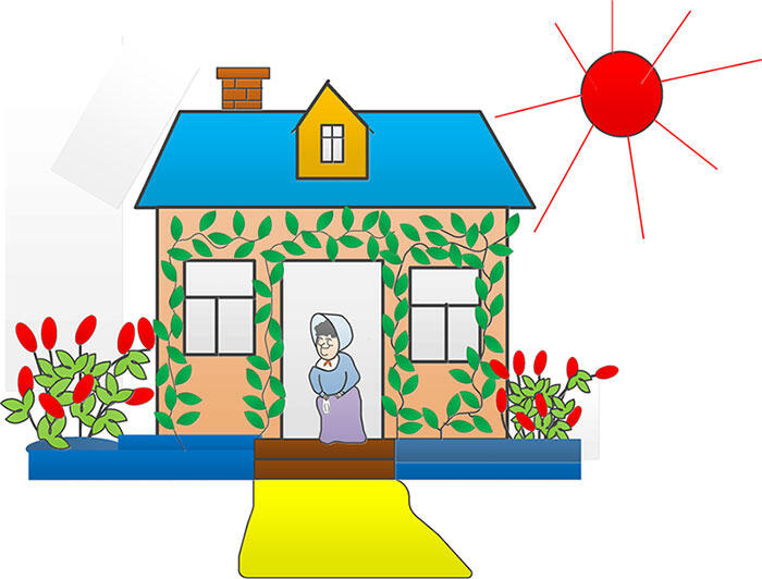 А в углу его они увидели небольшой, но очень красивый домик. И вдруг на его крыльцо вышла опрятно одетая старушка.