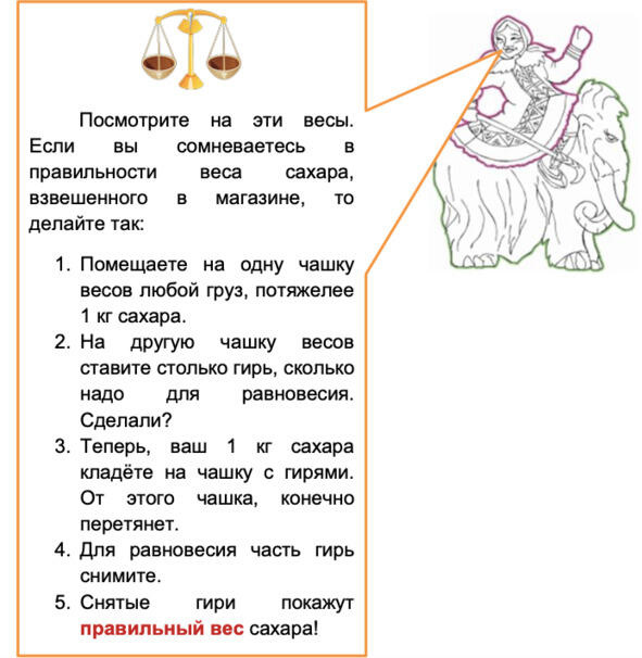 Получается, что наш 1 кг сахара теперь тянет на чашке с такой же силой, с какой тянули перед тем гири? Значит, вес их в точности одинаков? Какой он, поистине, велик химик Д. И. Менделеев!!!