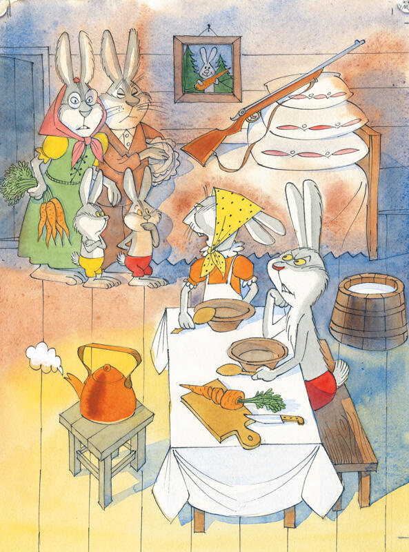 Открыла Зайчиха дверь, впустила родственников.