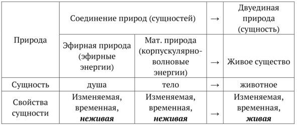 Для наглядности и лучшего уяснения сути соединения природ и сущностей, из них образованных, составим таблицы.