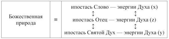 Вертикальными стрелками обозначена взаимопроницаемость ипостасей (энергий) Бога.