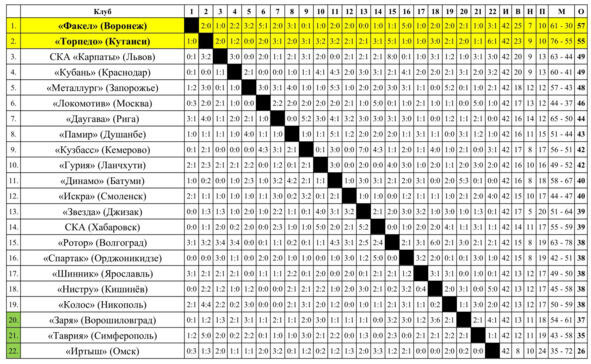 Участники 18 команд, 437 футболистов. Проведёно 306 матчей, забито 767 мячей. Лучший бомбардир Сергей Андреев СКА (Ростов-на-Дону) 19 мячей. Зафиксировано 14 автоголов, 100 пенальти. Игры обслуживали 30 арбитров. Средняя посещаемость 18812 зрителей.