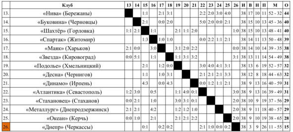 *Матч «Судостроитель» (Николаев) «Нива» (Винница) закончился со счётом 1:0, но хозяевам засчитано техническое поражение из-за участия 6 игроков старше 25 лет.
