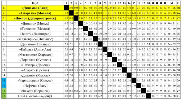 Участники 18 команд, 440 футболистов. Проведёно 306 матчей, забито 795 мячей. Лучший бомбардир Олег Протасов «Днепр» (Днепропетровск) 35 мячей. Зафиксировано 8 автоголов, 110 пенальти. Игры обслуживали 30 арбитров. Средняя посещаемость 21663 зрителей.