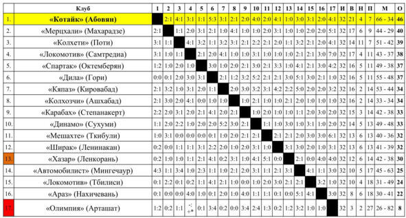 «Олимпия» (Арташат) покинул розыгрыш чемпионата СССР навсегда и во всесоюзных соревнованиях не участвовал.
