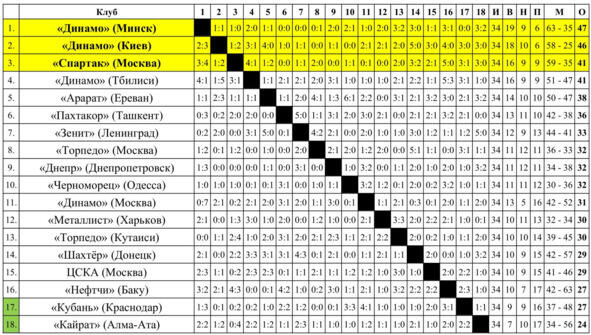 Участники 18 команд, 433 футболиста. Проведёно 306 матчей, забито 776 мячей. Лучший бомбардир Андрей Якубик «Пахтакор» (Ташкент) 23 мяча. Зафиксировано 6 автоголов, 87 пенальти, 7 удалении. Игры обслуживали 37 арбитров. Средняя посещаемость 18211 зрителей.
