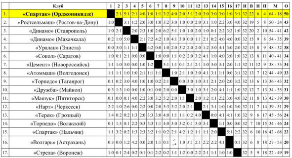 Команда «Спартак» (Орджоникидзе) вышла в финальные стыковые матчи Второй лиги.