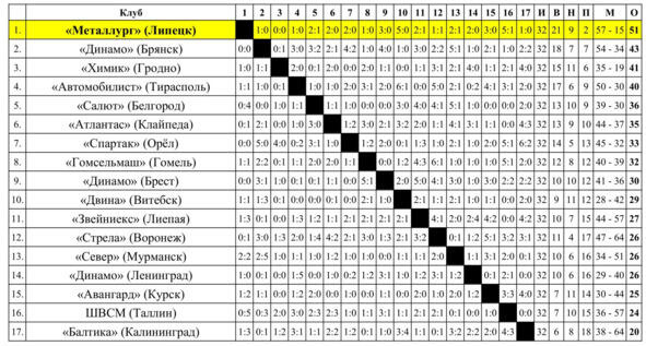 1983 год. Вторая лига. 6 зона