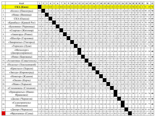 1983 год. Вторая лига. 7 зона