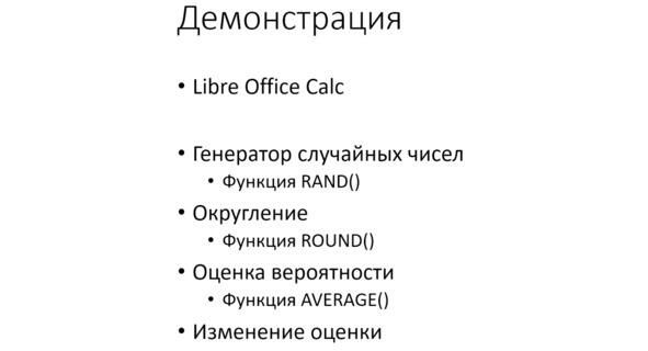 Проведём ещё один эксперимент. Нам предстоит как сгенерировать случайные числа в электронной таблице Libre Office Calc. Calc это сокращение от слова «Калькулятор».