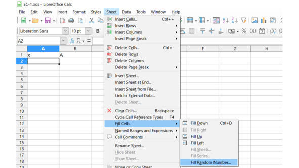 В верхнем меню выбираем Sheet Fill Cells Fill Random Number, см. рис.