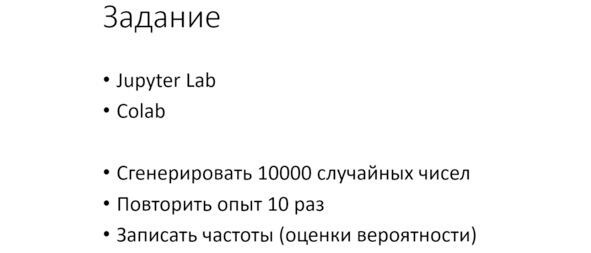 Далее находим среднее значение для всего этого массива чисел. Это делает функция mean. Полученную оценку вероятности выводим на экран.
