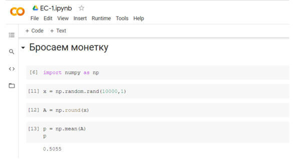 Мы можем проделать наши опыты с теми же результатами и в облачном сервисе Google Colaboratory, см. рис.