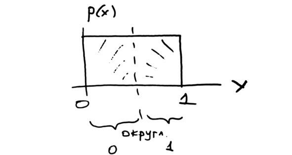 Вот наш результат мы получили число, которое очень близко к 0,5. Но это не ровно 0,5. Просто достаточно близко к теоретическому значению.