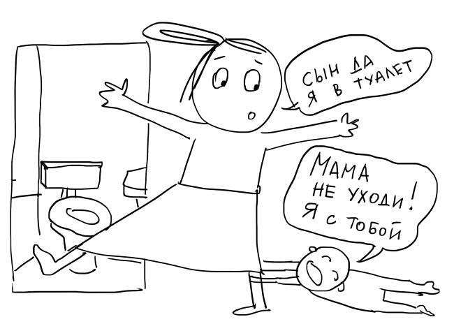 Нет, у нас такого не бывает. С ней постоянно кто-то рядом. Она не дает мне готовить ужин, если папы нет дома. Обычно в таких случаях бабушка задерживается, чтобы я могла приготовить ужин, пока она играет с Мариной. Если сама Марина не хочет есть, то мы с папой ужинаем по очереди: пока один ест, другой играет с Мариной. Причем игры она придумывает сама, играет сама, но нужен обязательно зритель.
