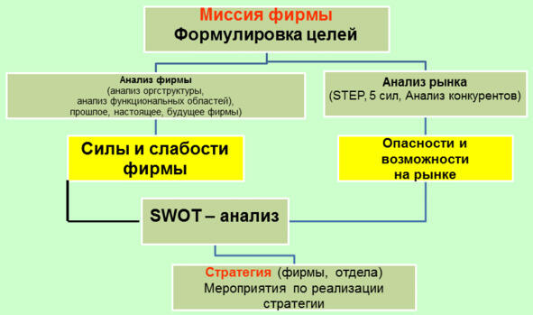 4. выведение стратегических решений, составляющих стратегию, из SWOT анализа,
