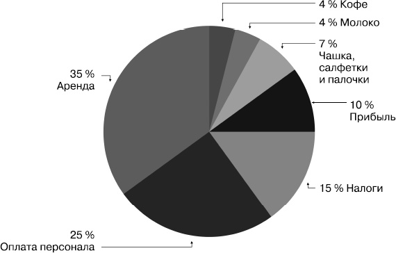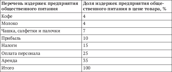 Из табл. 1.9 следует, что доля маржи всей цепочки создания ценности «чашка кофе» составляет 99,6 %. Это означает, что фермер, который вырастил зерна кофе, получит ни много ни мало по 40 копеек из каждых 100 рублей, которые вы заплатили бариста. Такова себестоимость сырья или товара, остальное доля услуг, которые создаются многими людьми и компаниями вдоль по цепочке движения кофе от зерна до чашки потребителя.