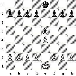 Собеседники стали наблюдать за тем, как проходило Пешечное сражение. Первыми, как и всегда, ходили белые первая пешка двинулась вперед на два поля и встала на е4. Затем вперед двинулась черная пешка тоже на два поля и оказалась на е5.