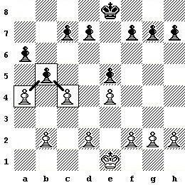 Зато Белая Пешка с поля с4 была смелее и напала на Черную Пешку, оказавшись на поле b5.