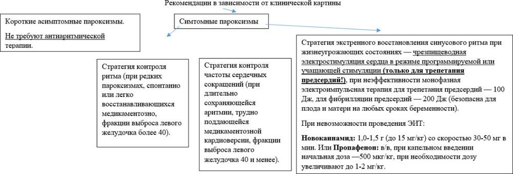 При рефрактерных к медикаментозному лечению пароксизмах фибрилляции и трепетания предсердий радиочастотная абляция (РЧА) предпочтительно до беременности или во 2 триместре с максимальной защитой плода.