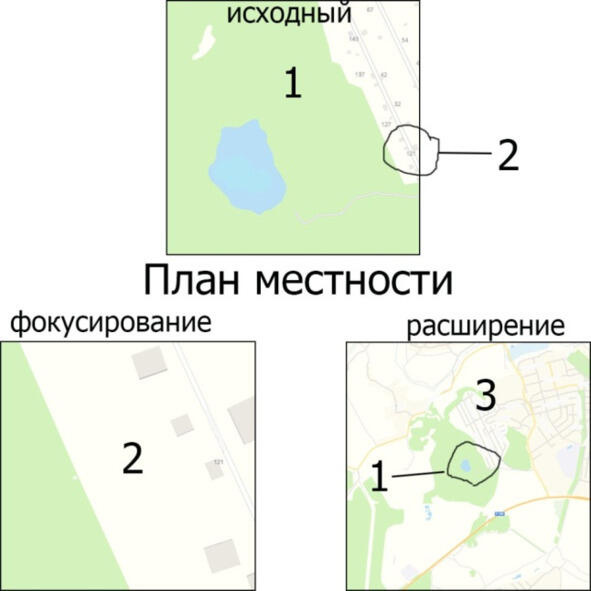 И наконец, третья полезная возможность изменения фокусировки. Вы можете навести фокус внимания на какой-то объект на карте в интернете, увеличить его и хорошенько рассмотреть во всех подробностях. Затем вы можете снова расширить фокус внимания, найти другой интересующий вас объект, выделить его и, увеличив, детально рассмотреть.