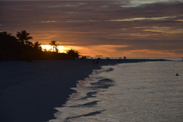 Встреча на пирсе, мелкие формальности, ключ от номера и вот мы в бунгало с выходом к морю и собственным лежаком на пляже. Пара мгновений и теплые как парное молоко волны радостно приветствуют нас, принимая в свои объятия.