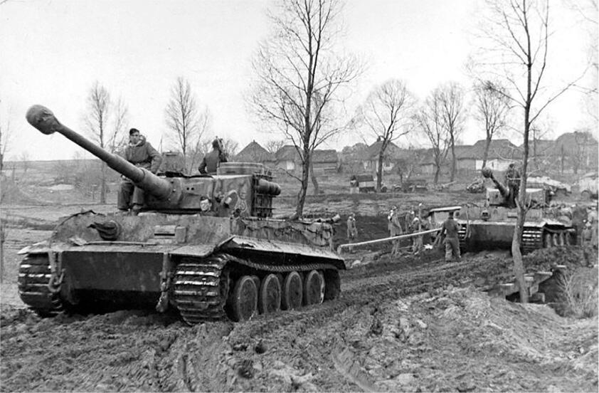 «Тигры» 1-й танковой дивизии СС «Лейбштандарт Адольф Гитлер» на марше.