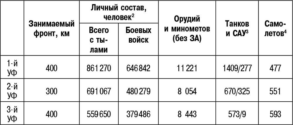 Таблица. Численность войск фронтов на правобережной Украине к началу марта 1944 г.[2]