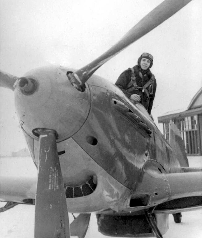 Летчик-истребитель лейтенант Петр Грищенко в кабине истребителя Як-7 (32-й иап, 5-й ИАК).