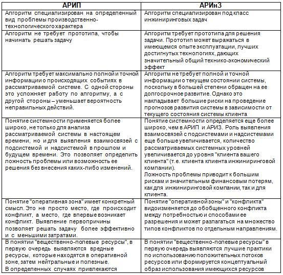 Табл. 3.2. Основные отличия АРИнЗ от АРИП