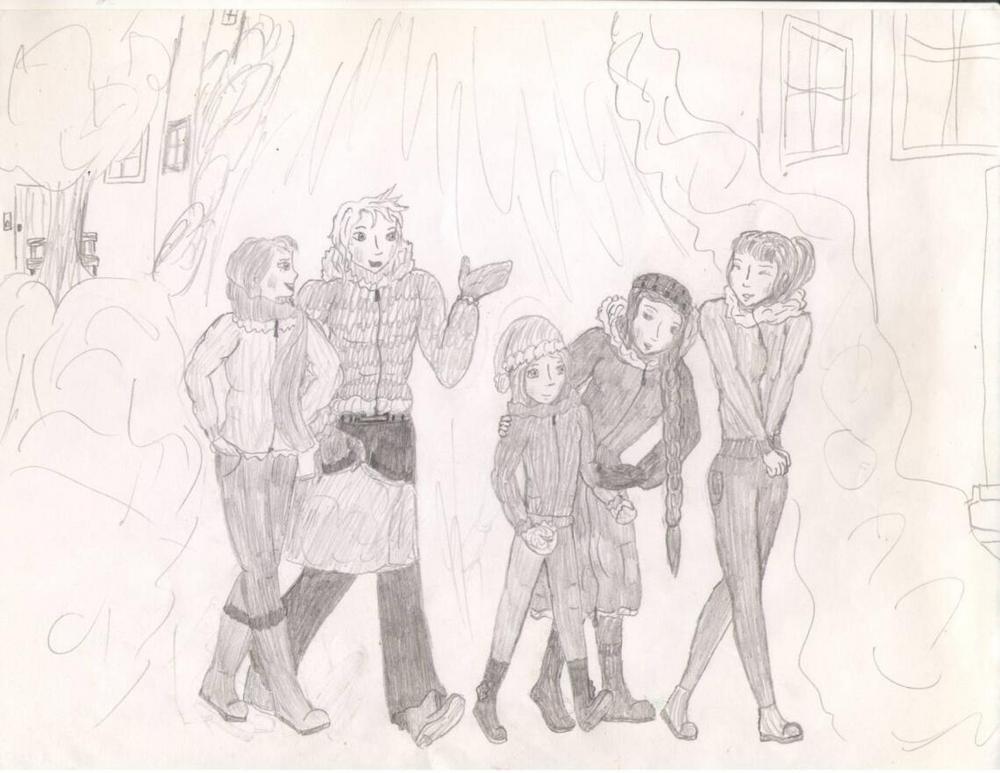 Именно такое настроение было у пятерых друзей, которые возвращались 31 декабря из парка с новогодней ярмарки. У Сони, самой младшей из компании, на голове был красный колпак с помпоном, как у Деда Мороза или Санта Клауса. Сашка, на правах единственного мужчины, нес пакет с покупками новогодними фейерверками и бенгальскими огнями. А Кира, Надя и Ксюша просто болтали. Из парка шли пешком.