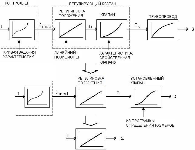 Ниже представлена схема, показывающая возможности контроллера, главной задачей которого является устранение нелинейности в связи с невозможностью обеспечить линейное (пропорциональное) изменение расхода при открытии клапана.