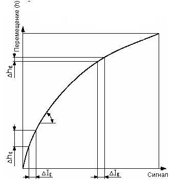 Рассмотрение изменений расхода от изменения сигнала регулирования (например, относительного малого перемещения клапана) позволяет найти погрешности в регулировании за счет нахождения отклонений от линейности, как показано на рис.7.