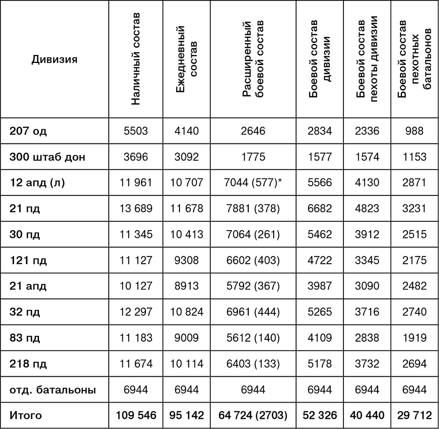 * В скобках в т. ч. численность запасного батальона.